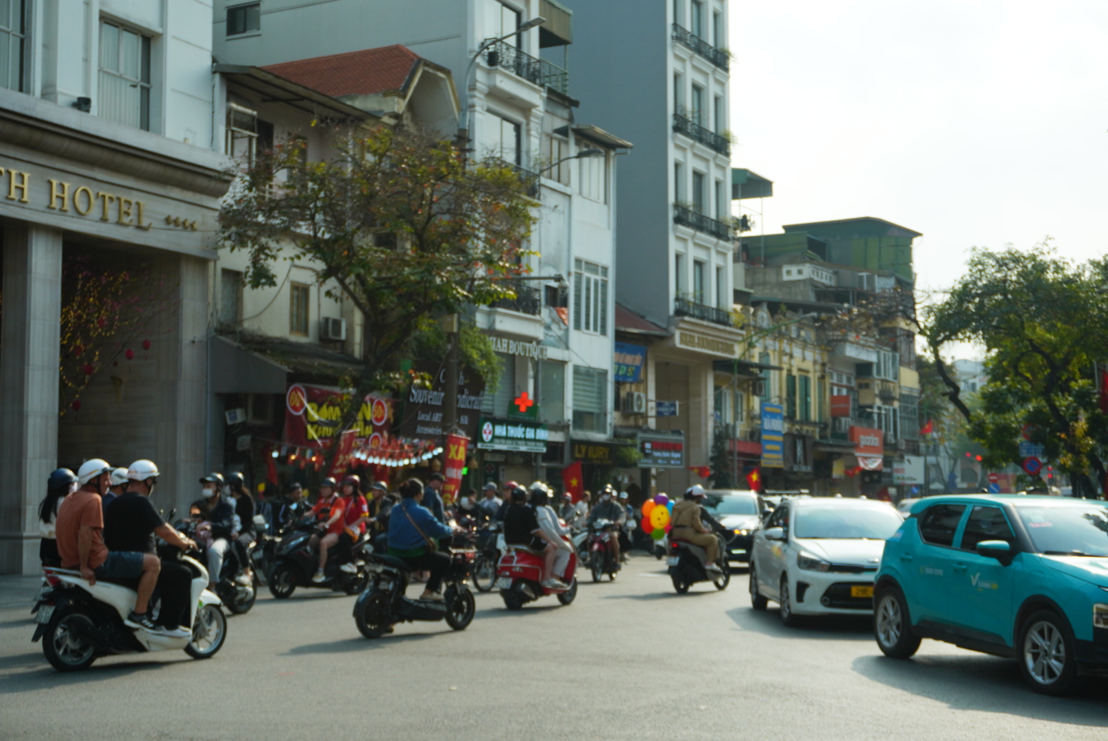 河内像我老家县城,城内多摩托车,摩的比出租车网约车多,交通混乱,红绿灯经常形同虚设。我很喜欢这种混乱感,和本地人、游客一起乱闯红灯,闯完和朋友说生死由我掌控。
